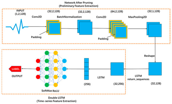 We pruned the convolution layer that needs a convolution operation and realized the data reconstruction by adding an LSTM layer. This has the advantage of reducing the amount of calculation required for convolution operation and of saving more data features for the LSTM layer operation.