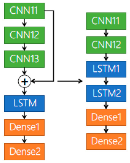 The accuracy of the results is improved by removing the third CNN layer, combining the first and second layers of CNN, and adding a layer of the LSTM layer. The pruning process is shown in Figure 3.