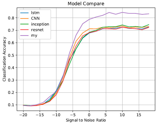 In recent years, several studies have focused on a modulation recognition method based on CNN. The first neural network for automatic modulation recognition (AMR) was designed by O’Shea in 2016 [9]. The CNN [10] at once became the realization paradigm for AMR. After that, scholars conducted extensive research on the neural network method for AMR and designed many models to achieve the accurate recognition of modulated signals, such as long short-term memory (LSTM) [11], RseNet [12], and the convolutional long short-term memory deep neural network (CLDNN) [13]. There is no doubt that the neural network model has become an effective method for AMR.