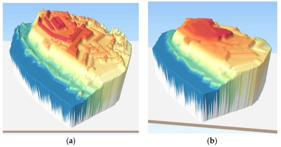 The use of such maps dates back to the 18th century []. Many believe that the topographic map is one of the most important procedures in mapping history due to its convenience. With the development of technology and the human desire for a realistic representation of the earth’s surface in three dimensions, the need for 3D data and 3D models arose. Digital terrain modeling involves a whole range of activities related to the collection and processing of terrain surface data, the creation of appropriate digital terrain models and analysis, as well as the use of acquired digital models in different areas []. Progress in the development of Earth observations allows the capturing of larger amounts of detailed data that are useful in many areas, such as geodesy, geography, geology, and others. LiDAR technology (light detection and ranging) allows for the capture of different layers of a surface with considerable precision [].