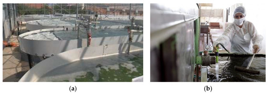 The investigated freshwater samples were grown in a bioreactor in Varvara, Bulgaria, and purchased from a producer for the investigation. Photos from the bioreactor are presented in Figure 1a,b.