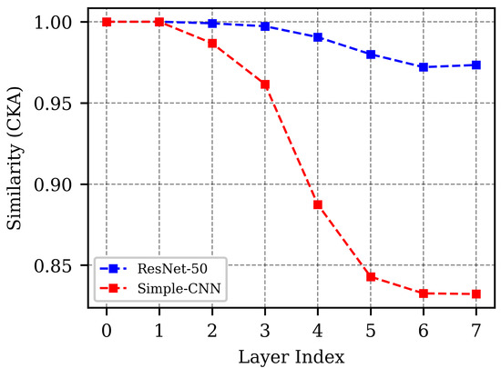 - Kornblith, S.; Norouzi, M.; Lee, H.; Hinton, G. Similarity of Neural Network Representations Revisited. In Proceedings of the 36th International Conference on Machine Learning, Beach, CA, USA, 9–15 June 2019; Volume 97, pp. 3519–3529. [Google Scholar]