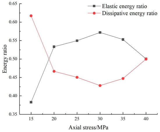 Rocks are natural geological materials containing joints and microcracks, which cause non-ideal elastic deformation. As the rock specimen is loaded, a plastic hysteresis occurs in the stress–strain curve, and the envelope area of the curve is equal to the dissipated energy. As the cyclic loading and unloading proceeds, the stress corresponding to the unloading point gradually increases. Correspondingly, the envelope area of the plastic hysteresis loop also increases, and the dissipated energy is used for the development and expansion of cracks, which causes damage to the structure and leads to a decrease in the ability of the rock to store elastic energy. With the increase of stress at the unloading point, the energy absorbed by the rock gradually reaches the limit of the stored elastic energy, and the rock will be damaged.
