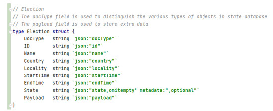 The Election asset (see Section 4.2.2) stores some public data so all organizations can consult those data. The fields to be defined for the asset depend on each voting process. In this proposal, it is assumed that there is no objection in that the number of voters has information in the public domain and is stored in the ledger when a specific electoral process is created. For example, the number of voters in an election process for a particular professional or labor organization may be irrelevant to the rest of the citizenry, but the fact that these data are in the public domain is not a problem.