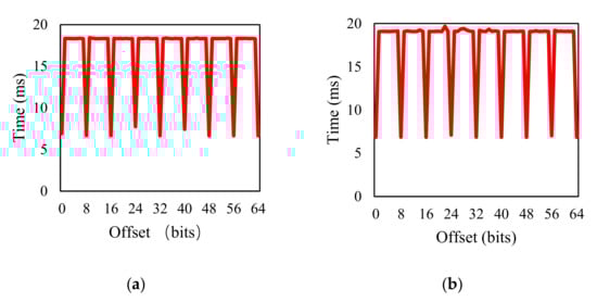 Figure 11. Time required to search/insert the global state with different offsets and the 8 bits length 1,000,000 times. (a) Search state. (b) Insert state.