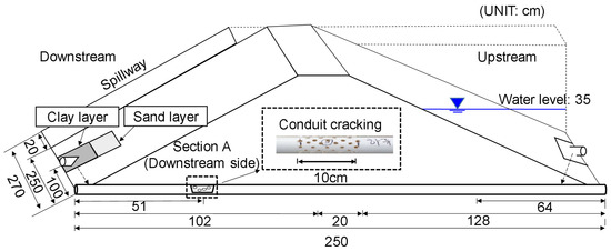 In the current model, the erosion characteristics and the effectiveness of reinforcement were evaluated under cracking conditions in the conduit (Section A).