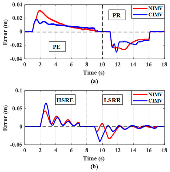 Comparison of the displacement errors in the NIMV and CIMV systems. (a) Cycle 1; (b) Cycle 2.