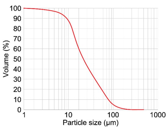 The chemical composition and physical properties of potassium feldspar and its granulometric characteristics following the manufacturer’s specification are presented in Table 4 and Table 5 and Figure 2. These data are provided by the manufacturer.