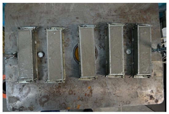 Homogenization of the geopolymer mixture was carried out for 10 min. Then, the geopolymer mass was poured into molds 40 × 40 × 160 mm and 100 × 100 × 100 mm in size, which was subjected to vibration (5 min) to remove unwanted air bubbles. The molds were protected from water evaporation for 24 h using a polyethylene film. Thereafter, the solid samples were removed from the mold and stored for 28 days in plastic bags.