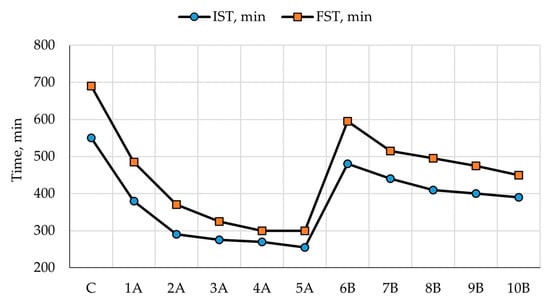 - GOST 310.3-76 Cements. Methods for Determination of Standard Consistency, Times of Setting and Soundness. Available online: https://docs.cntd.ru/document/871001226 (accessed on 12 November 2021).