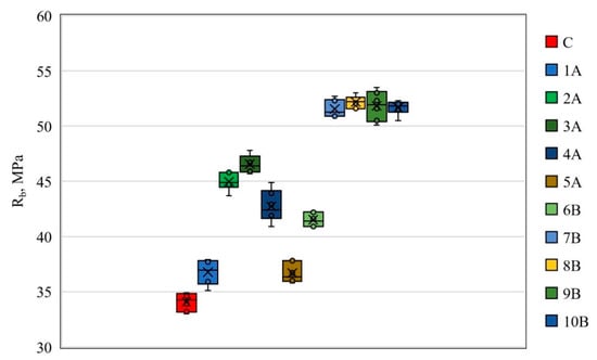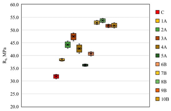 The flexural strength Rbtb, MPa, of a separate sample beam was calculated using Equation (1) as follows: