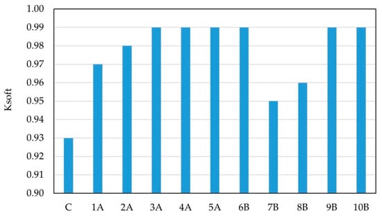 The values of the calculated softening factors are presented in the form of a diagram in Figure 11.