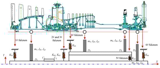 where qb3y, qb4y, qb3y, qb4y represent the stiffness of the 4# fulcrum and 6# fulcrum in the y and z directions, and qb4θz represents the rotational stiffness of the 6# fulcrum in the z direction in Figure 3.