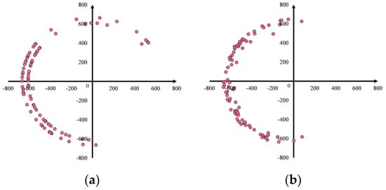Figure 16b provides the calculation result of the similarity between the original data and the simplified data. The shapes of the five micro scenes calculated by the proposed method changed markedly, but the changes in position and direction are small, which is consistent with the actual situation. The Fourier calculation results only showed that the similarities of the line group and polygon group reduced, and the specific operations could not be deduced from the calculation results.