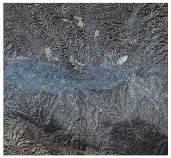 The experiments were based on a preprocessed GF-2 remote sensing image (Figure 14); the study area was Lanzhou, China. The image acquisition time was 6 December 2016, and the coordinate system was WGS-84.