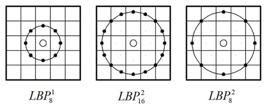 The original LBP operator only covers a small area within a fixed radius, which is the biggest drawback. Therefore, it is not suitable for different sizes and frequency textures. Ojala et al. improved the LBP operator [19]. The 3 × 3 neighborhood is extended to any neighborhood, and the square neighborhood is replaced by a circular neighborhood. The improved algorithm has any number of pixels in a circular neighborhood whose radius is R, so the LBP operator of P sample points is obtained. means to take P sample points in a circular area whose radius is R. It is shown in Figure 4.