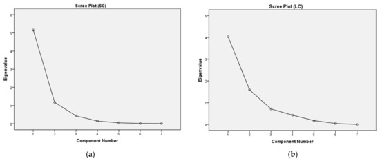 (a) Scree plot for the SC group (b) scree plot for the LC group.
