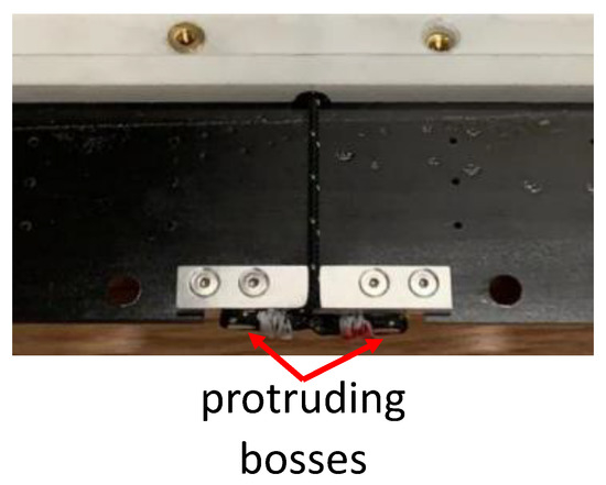 Five fibreglass-filled Nylon 12 parts spanning 199 mm constitute the sections along the wing-span and are printed to add up to the 995 mm wingspan. The actuator and actuation mechanisms (i.e., pulleys, bearings, tensioning mechanism) are mounted to an aluminium frame that is referred to as the ‘actuation module’. This actuator bracket is itself mounted to both box and channel spars, ensuring full load transmission between the main load bearing members of the wing. Since there are only three actuation points in this wing, there are only actuation modules at the spanwise Section 1, Section 3 and Section 5. Furthermore, Section 2 and Section 4 each have a machined aluminium rib connecting the two spars to add additional strength and stiffness (see Figure 12). To create easy access to the actuation mechanism for any required removal or replacement of components, an access panel was designed into the lower surface of Section 1, Section 3 and Section 5. These are attached to the actuation module by using a series of countersunk screws. A detailed description of the actuation mechanism will be presented in the following subsections.