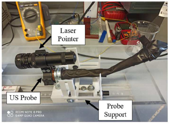 The experimental setup involved the Ultran WS75-2 (Ultran Group, State College, PA 16801 USA) ultrasound probe, made of lead metaniobate piezoelectric material (PbNb2O6) and characterized by a geometric focus, a nominal frequency of 2 MHz and a frequency band between 1 MHz and 3.5 MHz (Ultran Group, State College, PA 16801 USA).