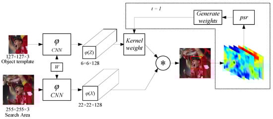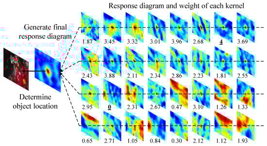 The aforementioned derivation shows that weighting the response maps of different convolution kernels is equivalent to weighting the features of the object template or the features of the search area. For convenience, we use the method of weighting the object template features to achieve the weighting of the convolution kernel response map.