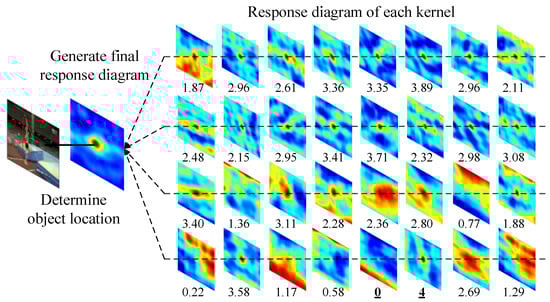 Similar to the “soccer” video sequence, the response maps of the “jump” video sequence for each convolution kernel are shown in Figure 4.