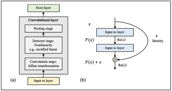 ResNet example: (a) A typical convolution layer, (b) example of a Residual Block [26,39].