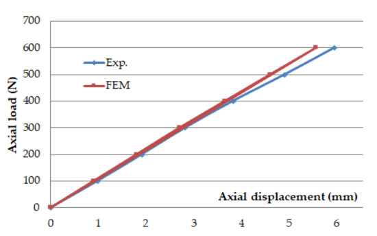Figure 9 shows the comparative displacement diagram of the specific point in the load zone of the Sarafix B50 configuration with composite frame for the data obtained with the FEM analysis and experiment.