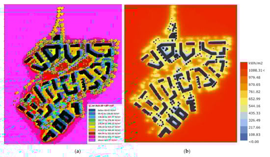 Comparison of radiation simulations: (a) ENVI-met; (b) Ladybug (source: authors).