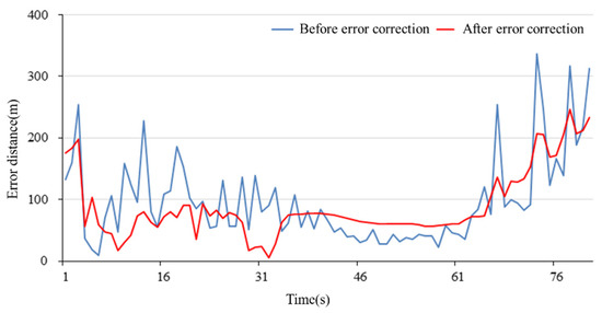 Correcting the positioning error, the error distance comparison chart can be obtained, as shown in the figure below.