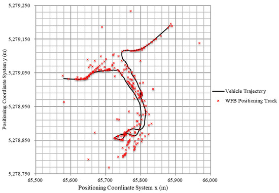 where is the vehicle positioning coordinates of the centroid algorithm, and is the weighting factor of centroid positioning. It can be obtained that the positioning coordinate of the WFB fusion positioning scheme is .