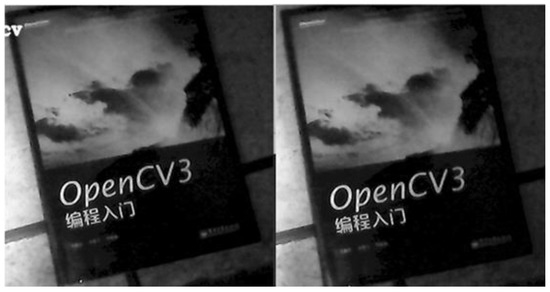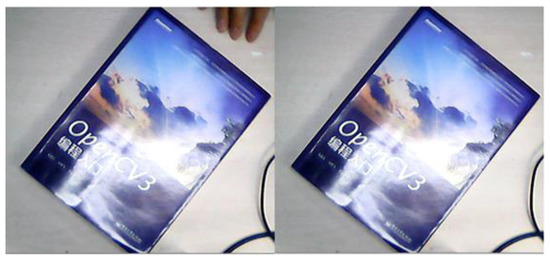 To verify the feasibility of the ORB algorithm, this paper compares the traditional ORB algorithm with the improved ORB algorithm, and the experimental environment is Pycharm 2021 and OpenCV 4.5.2. The recognition target map is a common book in the laboratory, and this paper will verify the two groups of images. The first group of pictures is an overexposed image experimental scene with a size of 523 × 481 in PNG format (Figure 6, Figure 7, Figure 8, Figure 9 and Figure 10). The second group is an underexposed picture experiment scene with a size of 526 × 489 in PNG format (Figure 11, Figure 12, Figure 13, Figure 14 and Figure 15). The experimental results of the ORB algorithm and the ORB algorithm based on image enhancement are compared respectively.