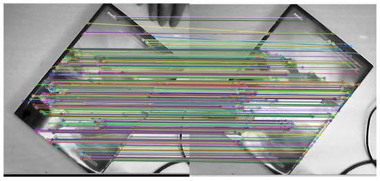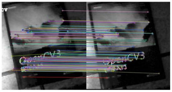 A comparison of the data of Table 1 and Table 2 shows that the improved ORB algorithm not only maintains the superiority of the ORB itself but also improves the matching effect under conditions of insufficient exposure or excessive exposure, where under excessive exposure conditions, the characteristic points increased by 78% and the matching point increased by 45%, and under the conditions of insufficient exposure, the characteristic points increased by 23% and the matching point increased by 34%. The effectiveness of the algorithm was explained by the above experiments and comparison.
