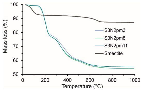 The weight losses (%) of smectite–urea composites according to TG curves.