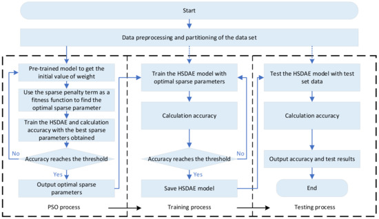 - Use the optimal sparse parameters to train the HSDAE, use the testing set to cross-validate, stop training and save the model when the accuracy meets the threshold;