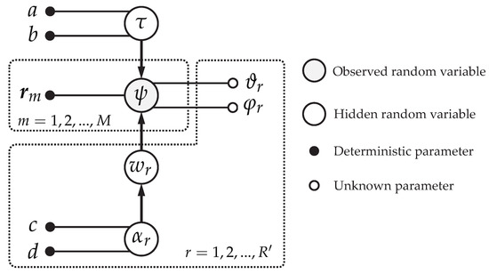where indicates the complex Gaussian distribution and is an identity matrix of size M. A Gamma prior with parameters a and b is considered over in this study for tractable inference of described as follows: