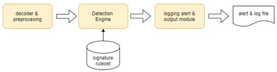 - Park, W.; Ahn, S. Performance comparison and detection analysis in snort and suricata environment. Wirel. Pers. Commun. 2017, 94, 241–252. [Google Scholar] [CrossRef]