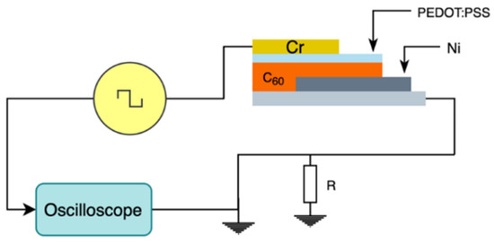 The sample was prepared by depositing a thin film of C60 on a silicon substrate coated with nickel acting as the blocking electrode. A thin film of PEDOT:PSS (~5 nm) was deposited on the C60 film to enhance its conductivity, followed by a chromium layer acting as the charge injecting electrode.