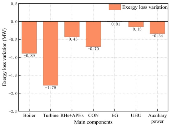 Contrastive analysis between the initial and suggested systems is carried out to explore the energy synergism of combined design, and Table 15 summarizes the results. The exergy loss variation of major equipment is illustrated in Figure 6, and the following points deserve attention before and after system integration.