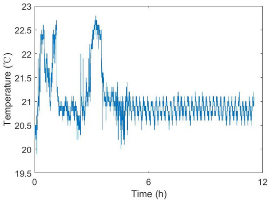 Therefore, we recorded the laboratory temperature under the same environmental and time conditions for verification. As shown in Figure 7, the first 6 h are the night when researchers work in the laboratory. The temperature of the equipment and of the people will cause temperature changes. The next six hours are the night break. The result of the test is unstable, with fluctuations of approximately 0.5~1.5 °C; this rightfully has a direct impact on the dispersion compensation. The corresponding depth change was approximately 0.3%. Clearly, the change in temperature is a long-term, slow drift, and we think the effect of temperature on the depth is a slow cumulative process, rather than a violent sudden change; additional means are required to overcome this. This will be a focus of our future research.