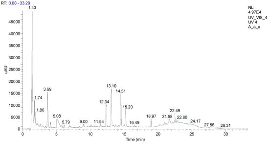 UHPLC chromatogram of A. armata aqueous extract, recorded at 280 nm.