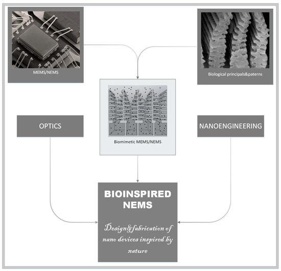 Bioinspired NEMS can play a crucial role in curing or preventing disease. There are currently many NEMS applications in biology and biomedicine, and thus many articles in this field [28,29].