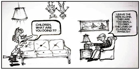 Moreover, when downscaling from the MEMS to NEMS level, forces between system elements cannot be described by using a classical physics framework. The quantum effect must be considered and controlled, which is one of the most challenging tasks for the development and applications of future NEMS. Figure 6 shows the cartoon image of “strangeness” of quantum mechanics [44].