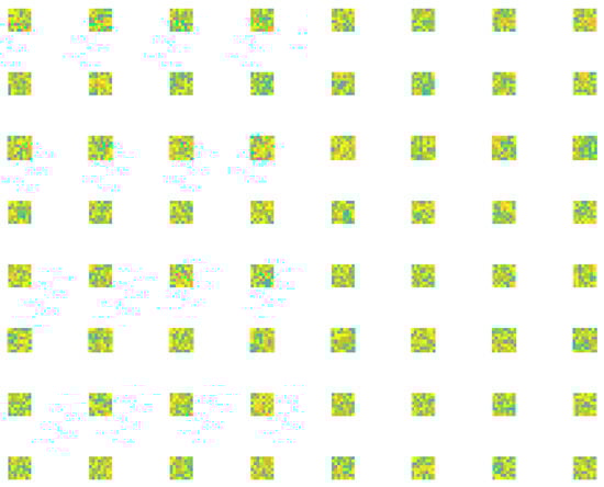 Figure 2 shows an example of bases computed with sparse coding in this study. The bases were obtained from the training images. In this study, we were first trying to create a dictionary that contained a set of bases that are a combination of healthy and damaged apples. The dictionary was constructed using training data or basic images. The purpose of this study was approximating test data (new image) using a small number (Sparse) of training images. We first approximated the new image with a set of training images by minimizing the squares of the reconstruction error, and then it was categorized in one of the 18 groups. The computing details of the bases were discussed by Gehring and Lemay [23].