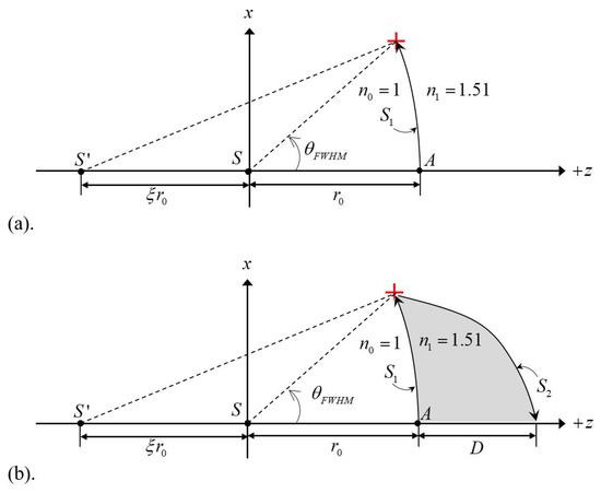 - Avendaño-Alejo, M.; Román-Hernández, E.; neda, L.C.; Moreno-Oliva, V.I. Analytic conic constants to reduce the spherical aberration of a single lens used in collimated light. Appl. Opt. 2017, 56, 6244–6254. [Google Scholar] [CrossRef] [PubMed]