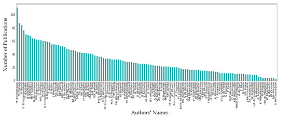 In addition, the collected publications were further restricted to authors from twelve Saudi Arabian universities, making it a more focused case study. Specifically, King Abdul Aziz University (KAU), King Fahd University of Petroleum and Minerals, King Saud University, Umm Al-Qura University, King Faisal University, Imam Abdulrahman Bin Faisal University (IAU), Islamic University of Madinah, Qassim University, Taibah University, Taif University, Jouf University, and the University of Hail were concentrated [36]. Hence, the authors’ names were manually selected from the official university websites in relation to three different academic ranks: professor, associate professor, and assistant professor. Each university had 10 selected authors with 100 or fewer publications each. This narrower focus also allowed for the consideration of the specifics of the authors’ publication time ranges. However, while the quality of the similarity result can be enhanced by providing additional data for the author, the data extracted using the PoP tool alone was insufficient and missing the keywords that the scholars had assigned to their publications, which is one of the important features of this study. Hence, we integrated the data from the PoP tool with the keywords and affiliations related to these authors’ publications. Figure 4 illustrates the full process of collecting the required data.