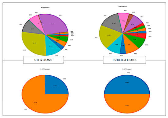 Citation analysis is one of the primary methods used to evaluate papers in an academic social network. Indeed, citations certainly act as a popular indicator (weighting) for research outcomes; hence, they can index the beneficial nature and magnitude of the paper’s contribution [45]. This study thus considered the number of citations as a factor that reflects the contribution of an author to scholarly communities, so we calculated the total number of citations per author by totaling up all of the citations for all of the author’s papers. This was given that :