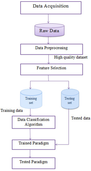 From a data mining perspective, medical data classification is a process that requires the following main steps: (I) Data acquisition, (II) data preprocessing, (III) feature extraction, and (IV) data classification. Figure 3 shows the steps of preprocessing, feature selection, and classification. In the following sub-sections, we discuss these steps.