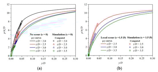 The p-y curves consider the dilatancy in (a) no scour condition; (b) local scour condition.