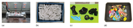 Several different scenarios or combinations of conditions can be distinguished, such as working with overlapping, similar, different, multiple, complex objects with undefined positions, etc., where some situations are illustrated in Figure 3. Additionally, the objects can be known, whether information is available beforehand, or otherwise, the objects are unknown. Some combinations of conditions make the task more complex and vice versa, and accordingly, available methods are similar for some scenarios. The required industrial robot control methods briefly can be distinguished in two different cases, respectively: