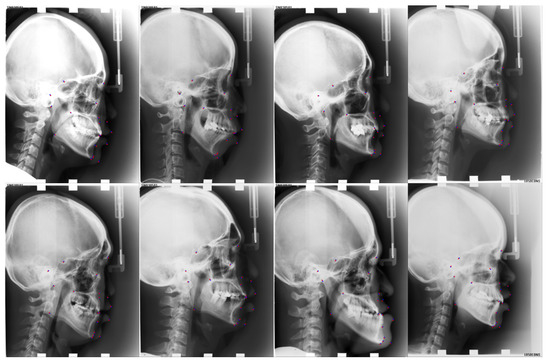 - Zhong, Z.; Li, J.; Zhang, Z.; Jiao, Z.; Gao, X. An attention-guided deep regression model for landmark detection in cephalograms. In Proceedings of the International Conference on Medical Image Computing and Computer-Assisted Intervention, Shenzhen, China, 13–17 October 2019; pp. 540–548. [Google Scholar]
